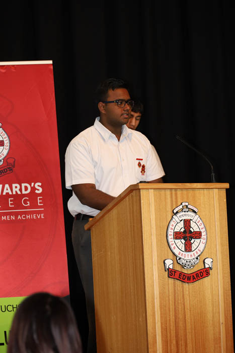 Father Greg spoke eloquently on this year’s theme Be the best you can be. Our College Principal, Mr Bonnici, also spoke about the importance of this year’s theme at our College. All who heard these speakers would understand that the men of St Edward’s College are expected to put their best effort into all they do. The students were also encouraged to use their gifts and talents to involve themselves in as many activities as possible.