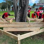 On Friday 5 May, Mr Austin’s Year 10 Woodwork class built a hexagonal seat around a tree near the Yarning Circle with Joey and Mick from Construction Trade Qualifications. They taught us many things about trades and apprentices, mainly focusing on the carpentry trade and the pathways that can come from it.