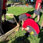 The process of making the deck started by digging holes around the tree and planting posts into the ground. We had to make sure they were level and plumb before we filled them with concrete and started on connecting the outside supports. Once that was completed, we started work on the inside support then on the decking itself. After completion we had another chat with Joey and Mick about apprenticeships where they answered any other questions we had.