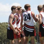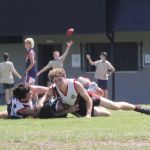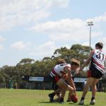 Our next two matches proved to be a bit more open as the players unaccustomed to the game started to get a handle on the skills and techniques required for an open game of AFL. Team defence was an absolute standout, with our backline limiting opposition scoring shots, strong defensive tackles and starving them of possession. A highlight of the day was Archie Price using his body and shoulder to level a player – a clean hit, so good that players from both teams cheered and applauded.
