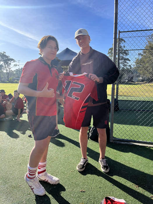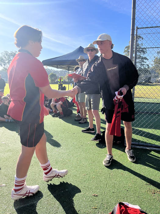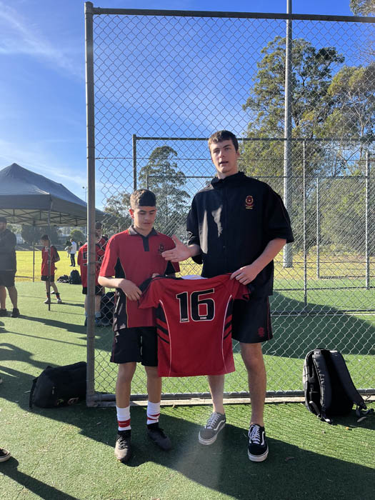 The success of both teams at the Under 13 Rugby League Gala Day would not have been possible without the guidance and support of the “Dream Team” support staff, consisting of Year 12 students Sean Bullen, Cooper McBride, and Malachi Smith. As players in the Schools Open League Team, Sean, Cooper and Malachi, in a special touch, presented the boys with their jerseys at the beginning of the day. Their encouragement and assistance throughout the day significantly contributed to the boys’ performance.